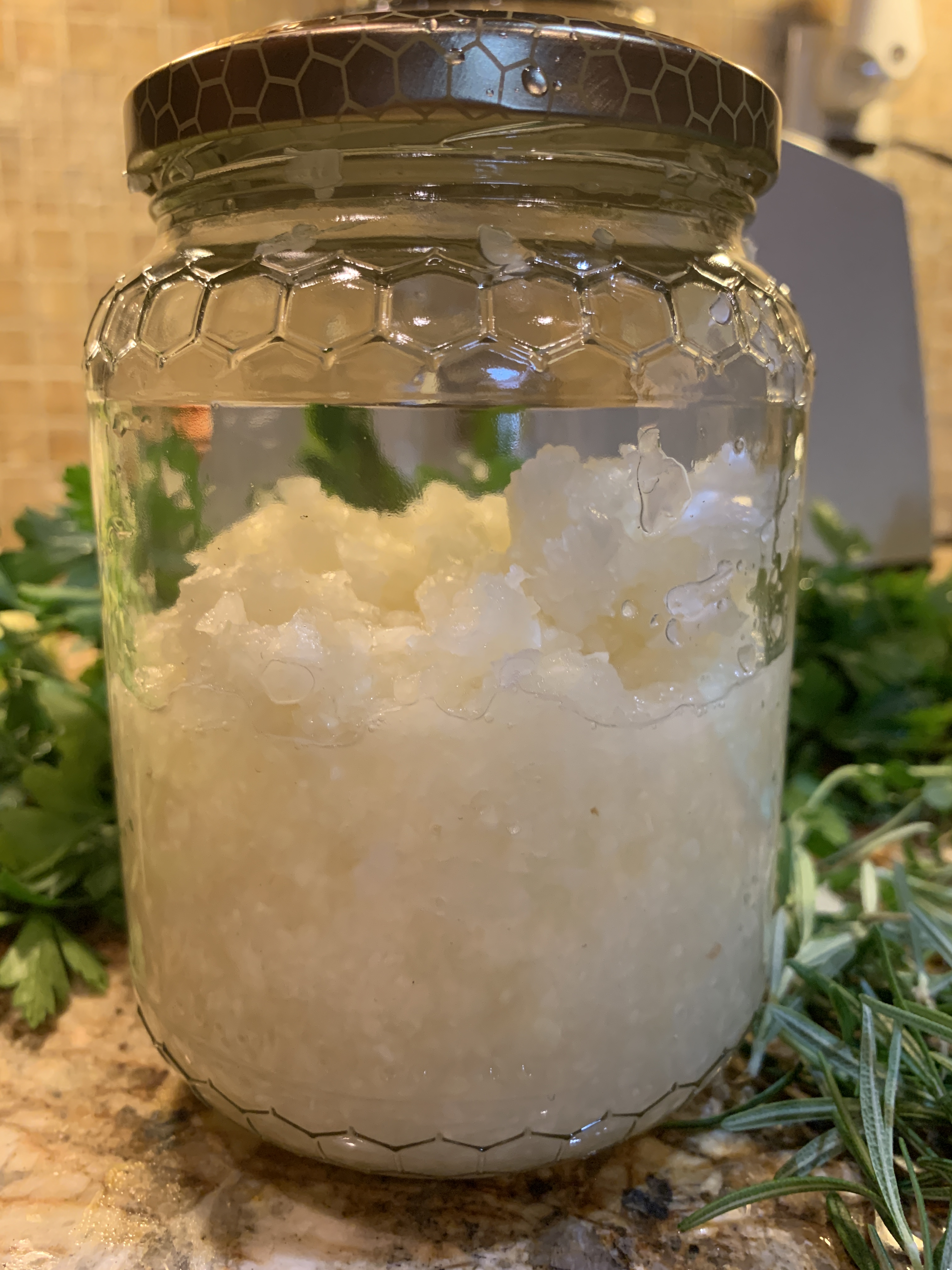 BASIC HERB BLEND: Onion and garlic are the base of every herb blend I create. One jar of garlic and onion mixture could be made with 5 medium sized onions and 2-3 entire heads of garlic. Peel and cut the onions into halves or quarters depending on the size and strength of your food processor. Separate the garlic and peel each feg. Put onion and garlic together in the food professor and pulse until you achieve desired consistency. I usually want to see some little chunks and avoid making a soupy mixture.