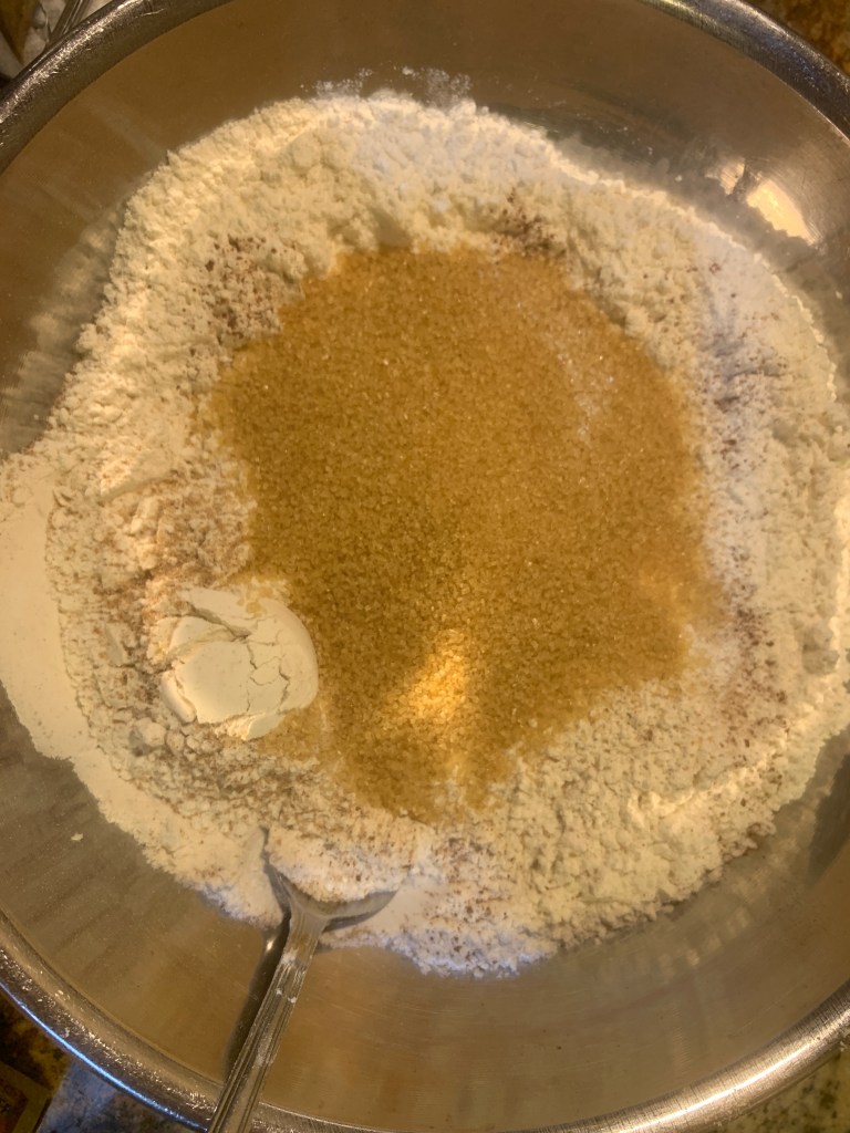 - Grate a generous amount of nutmeg into the bowl with the other dry ingredients