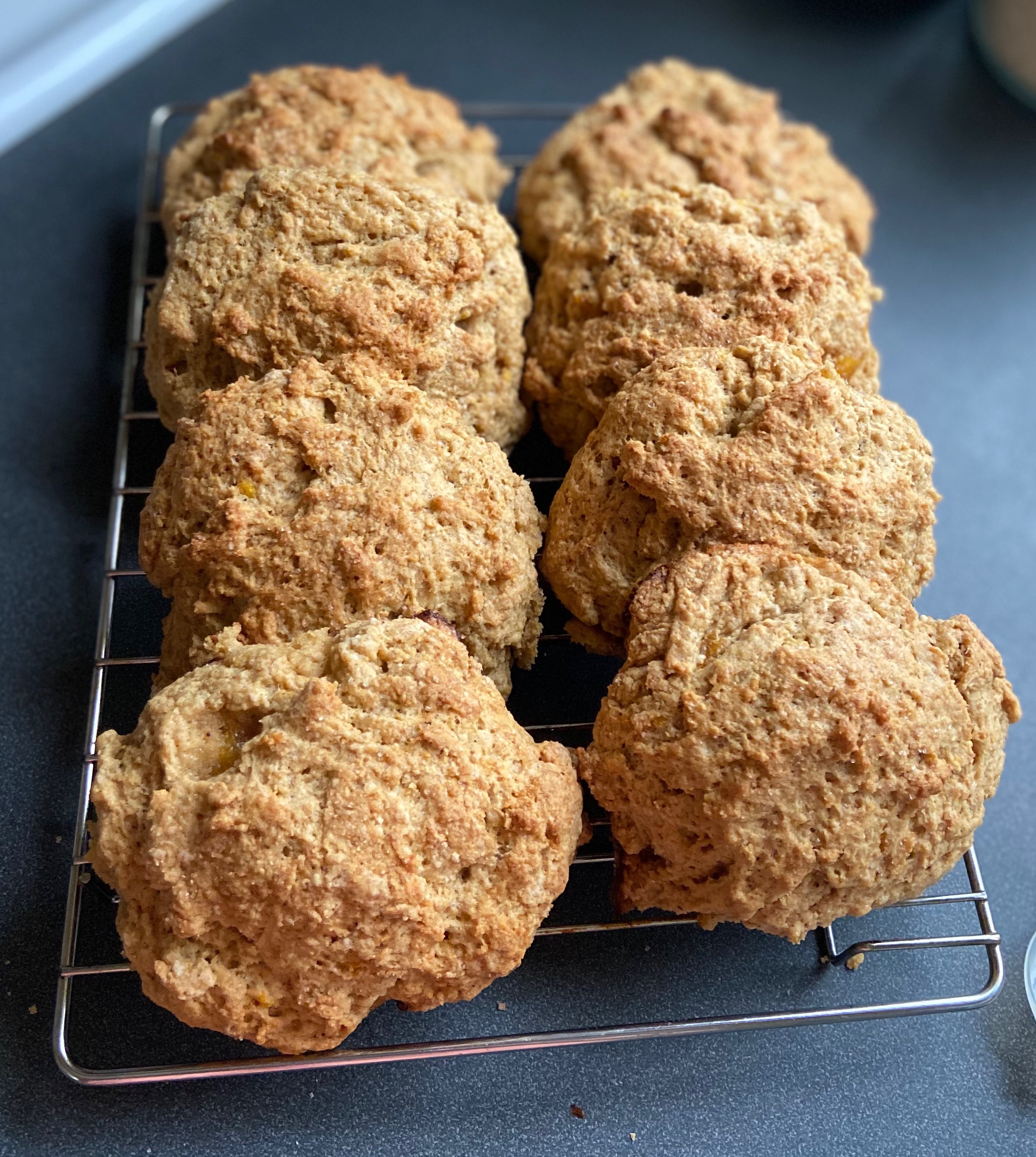 The orange scone’s effect on your palate should yield sensations similar to those enjoyed by the sommelier as she inhales the delicate accents of an exotic wine and sloshes it about slowly in her mouth. Your sense of smell grabs the citric notes of the scone and delivers an ephemeral experience to your taste buds – truly ecstasy in every bite.