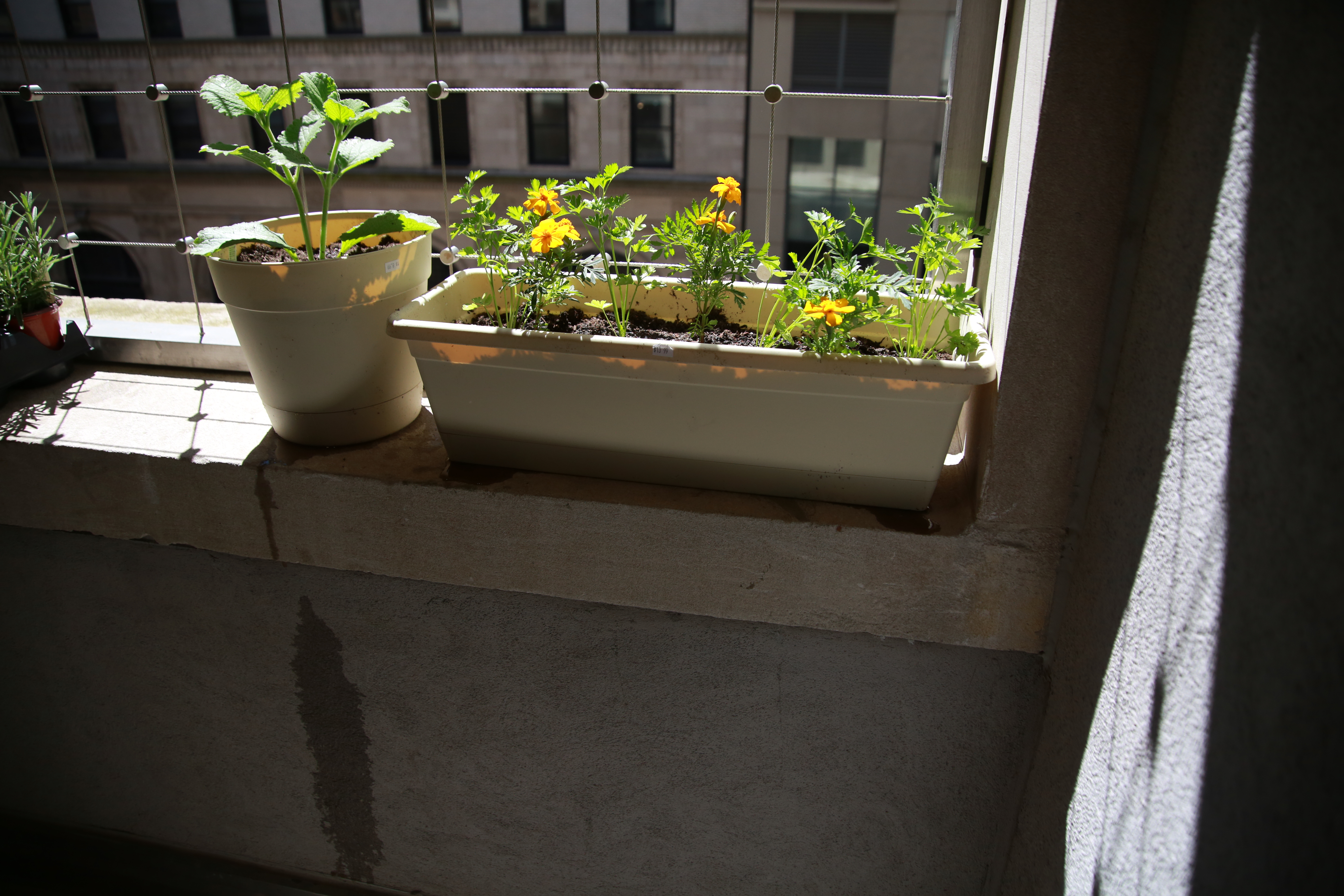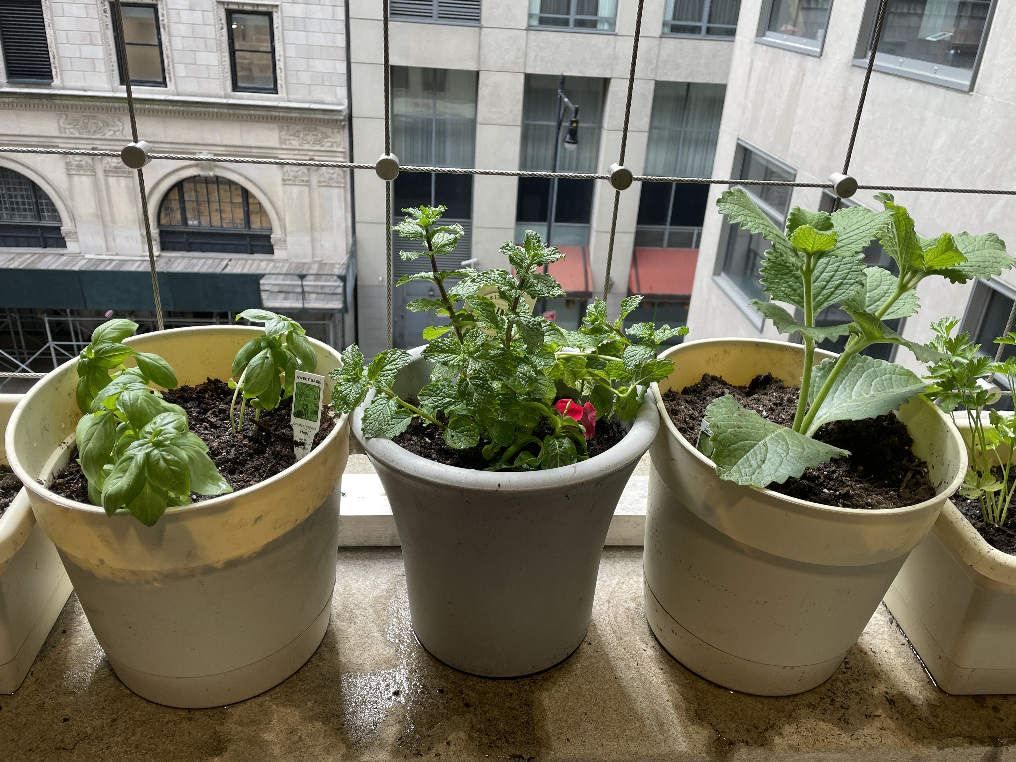 I had the idea to create The ITP Community Herb Garden on the north facing balcony of the ITP floor (4th floor) when I realized that the balcony is not fully enclosed and that it receives a significant amount of direct sunlight.