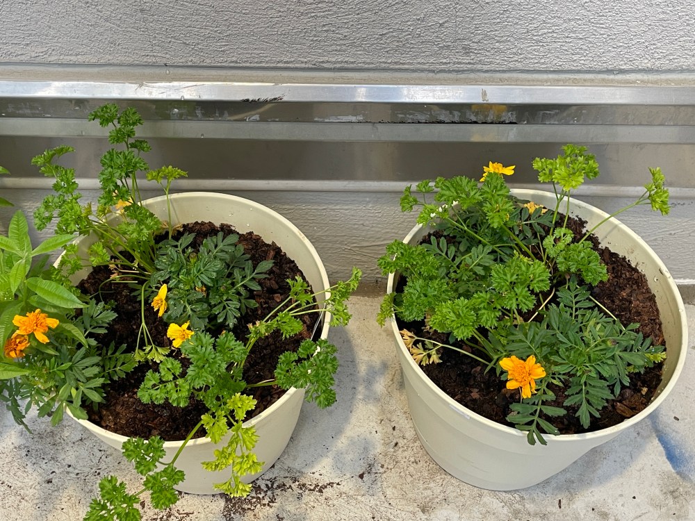 🌿Check for pests. In less than 2 weeks of its existence some intrepid female swallowtail butterfly found our herb garden. Flattering, I say. “Cute” and “lovely” you might say. But her offspring are voracious eaters and would wipe out the parsley we planted in a few days. So her caterpillars are pests in our garden.