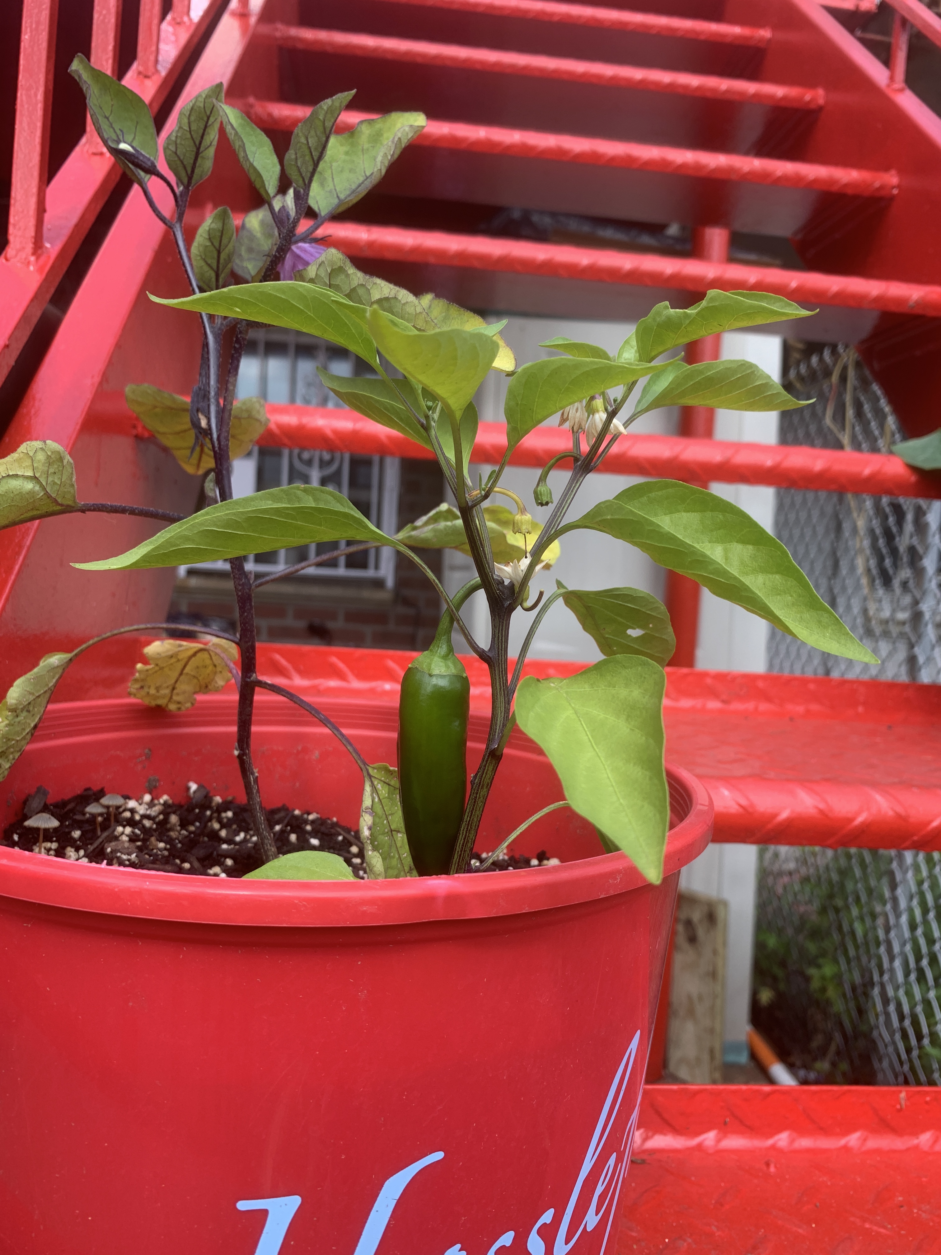 I call this project “The Most Urban Garden“, because it scarcely gets more citified than this. My backyard is by itself a 20’*20′ concrete patch surrounded by chain link fence. I have dreams every year of tearing up the concrete and changing the fence but – as we would say in Guyana – “paisa na bah.” So, in true Guyanese fashion, I learn to make do and cultivate true happiness out of containers each year.