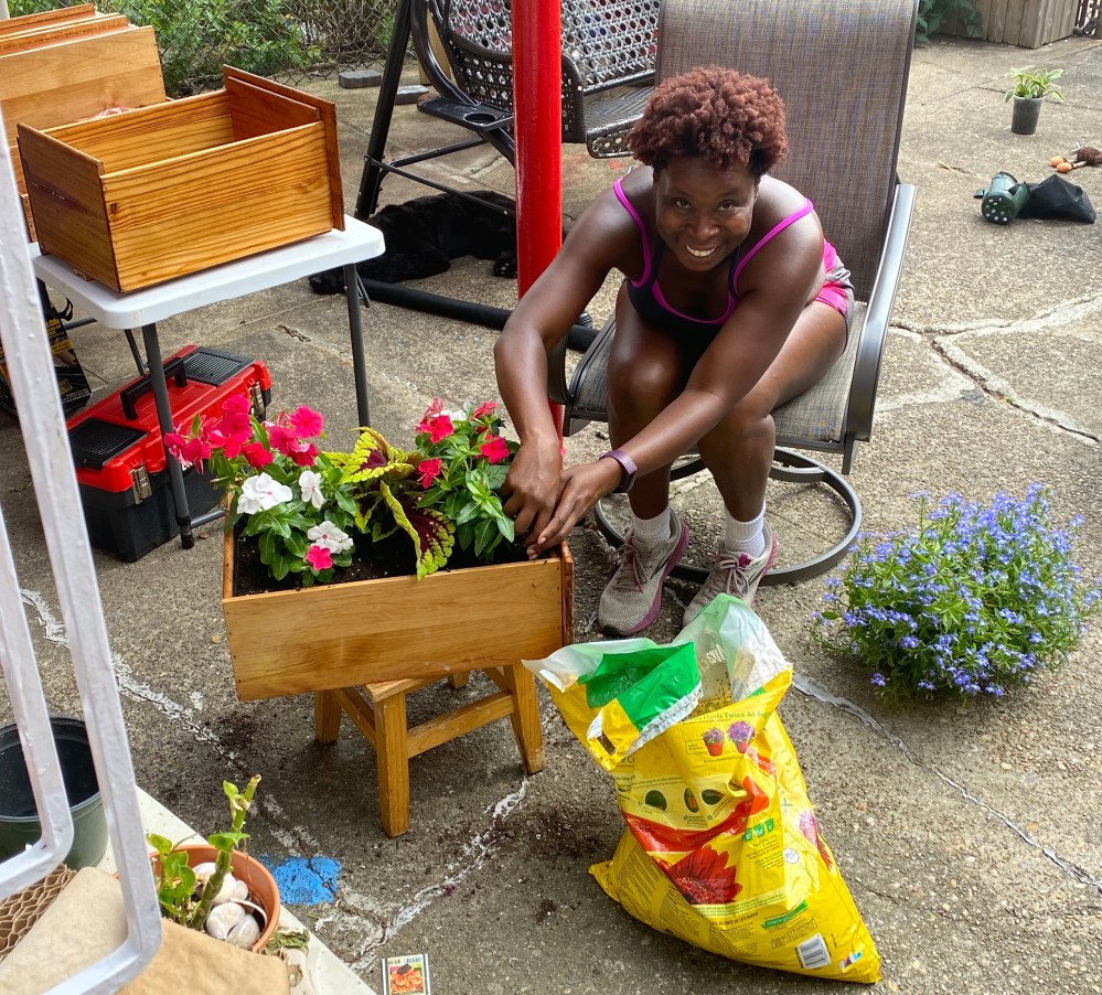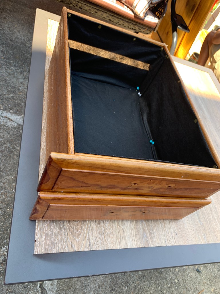A few coats of polyurethane later we had these beauties. We drilled holes in the bottoms and lined them with garden fabric – and VOILA!