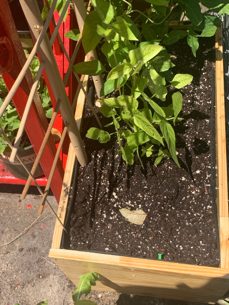 Also by the time my bora bean started growing and reaching for a place to climb, all the trellises at the local plant supply places were all sold out, hence the DIY trellis shown below.